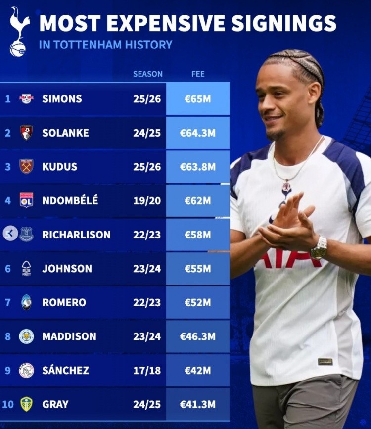 近年热刺引援投入持续高位,单赛季投入常达1.5-2亿欧元,2023/24赛季甚至创下2.72亿欧元纪录。