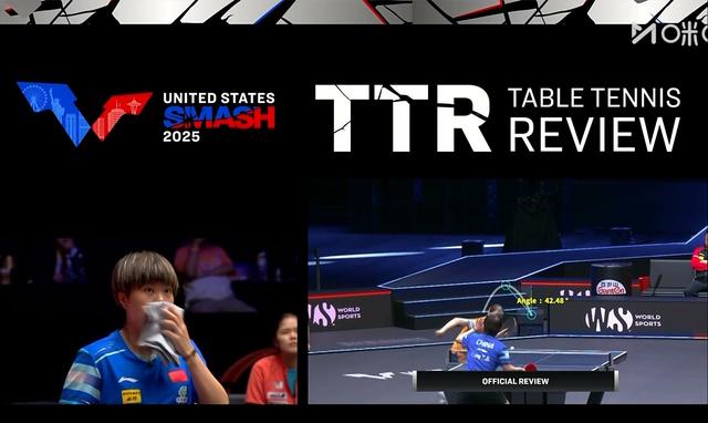 第二局,王艺迪展示了什么叫做“我的眼睛就是尺”。5-5平时,王艺迪认为长崎美柚发球存在回抛的情况,随即发起鹰眼挑战,经过TTR的判定,长崎美柚抛球角度为42.48°,确实存在发球违规的情况,王艺迪挑战成功。这一分过后,长崎美柚就不敢再发勾手了,一直都是小高抛。