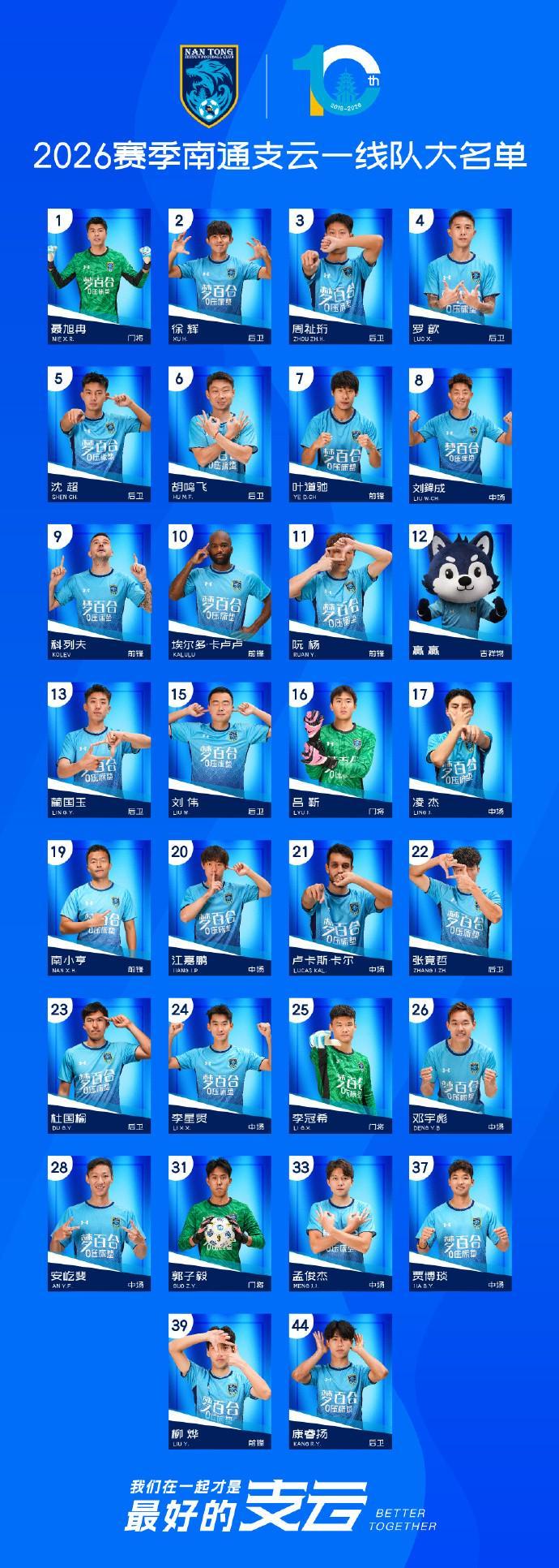 南通支云2026赛季一线队大名单: